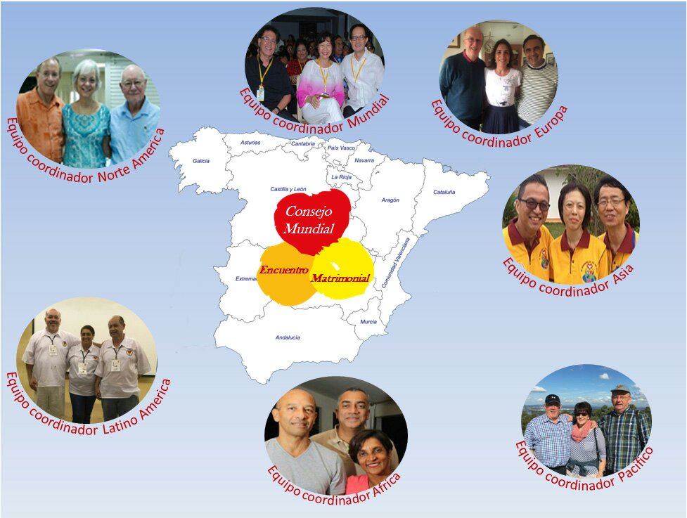 This Council is formed by the International Ecclesial Team and 6 Ecclesial Teams, that correspond to the 6 great regions in which the movement is present: North America, Latin America, Oceania, Africa, Asia and Europe.